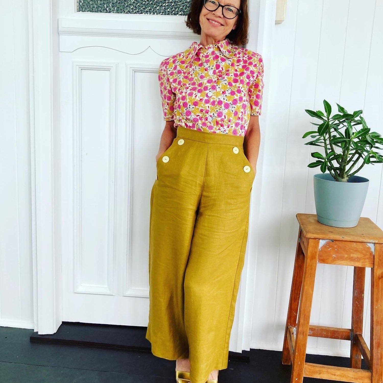 Thanks Laura! I received your beautiful pants and they fit perfectly! They will certainly be a favourite. I love the buttons, the colour and the style. I went out in them yesterday for the first time and had a lovely stranger on the street telling me what great pants I have.