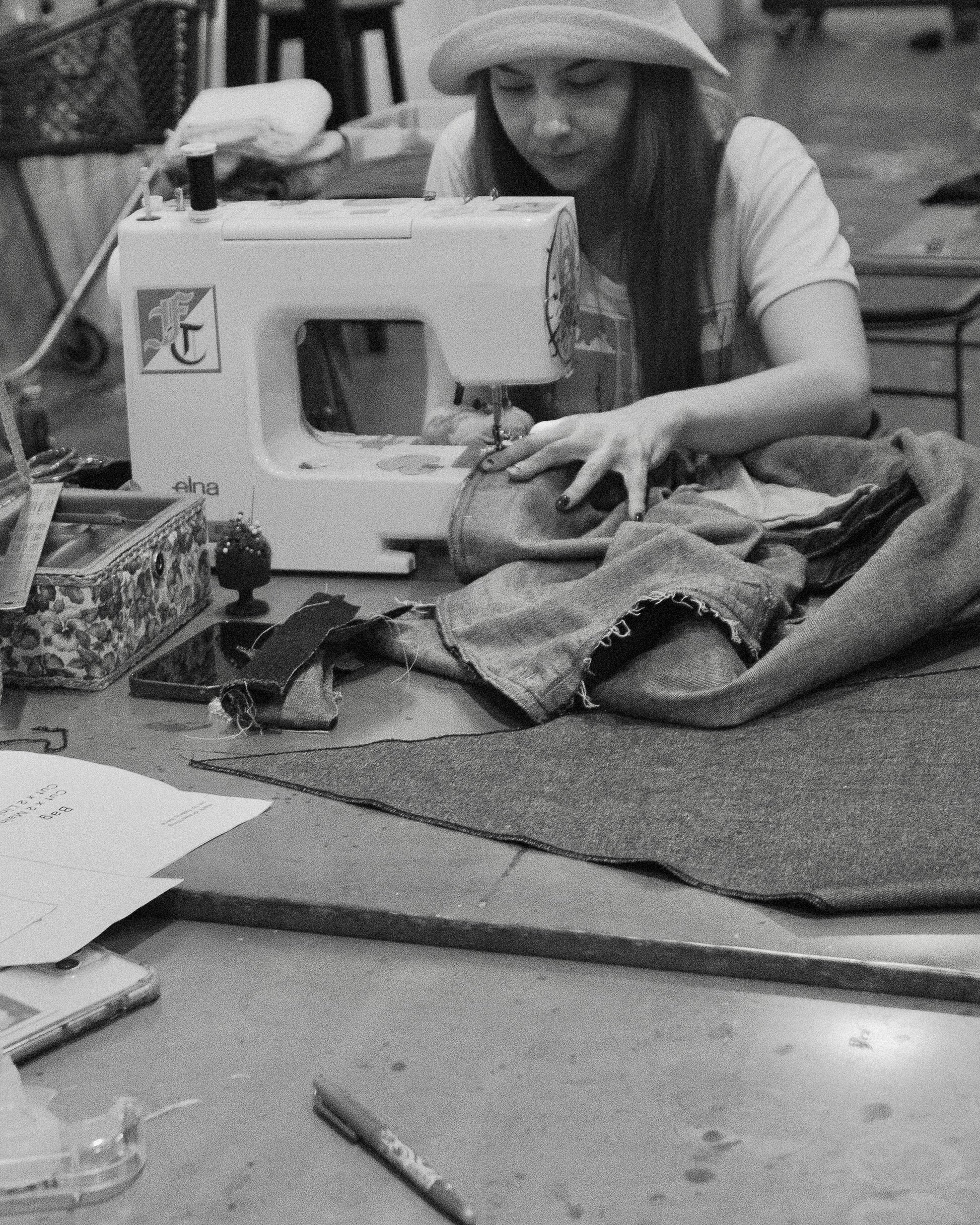 Founder of a hop and a skip, Laura holds an Advanced Diploma in Fashion Design and has worked across both fashion and costume. She specialises in garment and accessories construction, creative problem-solving, and upcycling — repurposing what’s available to create beautiful new pieces. She has taught large groups at festivals and individuals in her studio, and is passionate about bringing sewing back from the factories and into your hands.