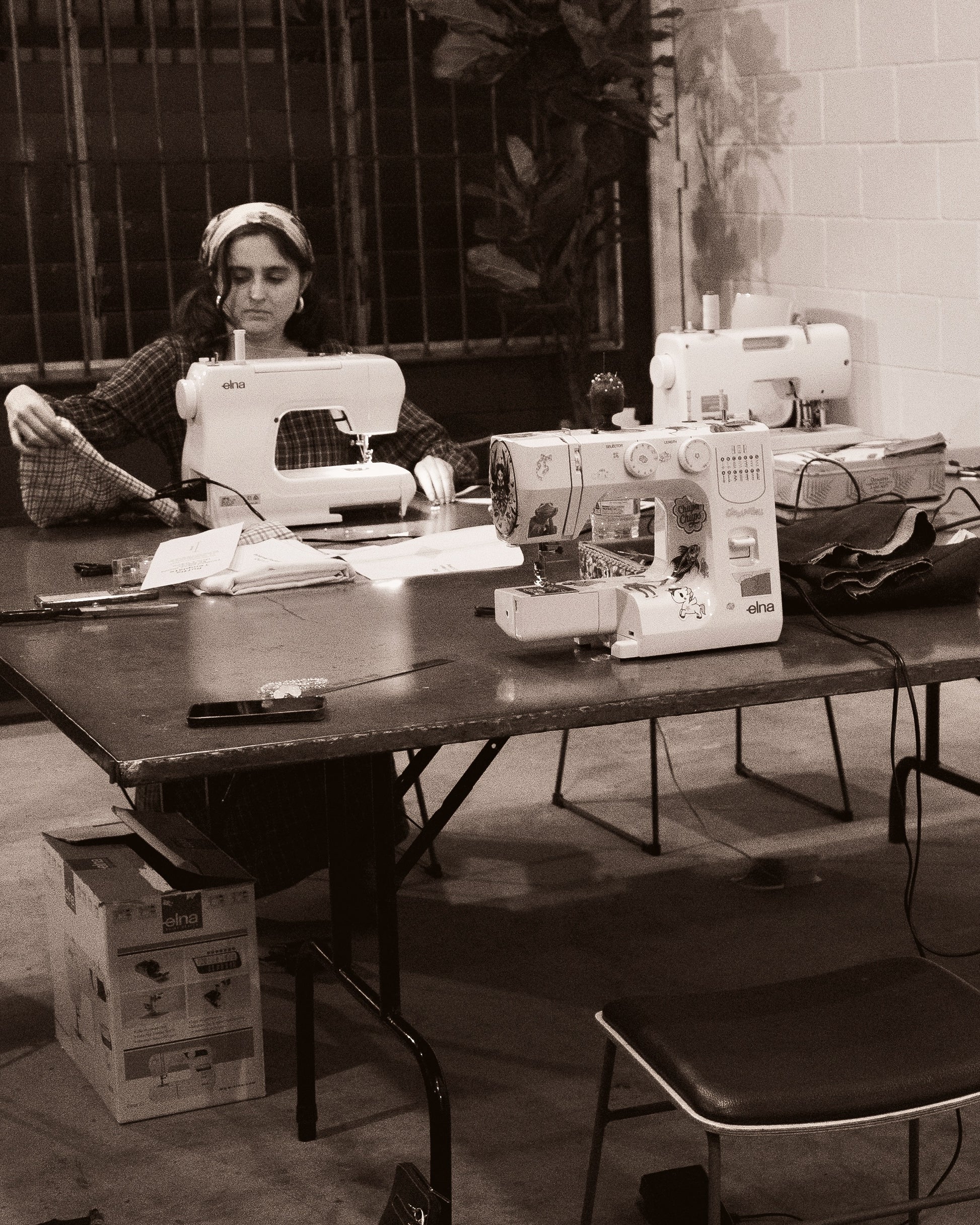We provide access to studio tools like cutting tables, irons, and specialist equipment, but you’ll need to bring your own sewing machine and personal supplies.